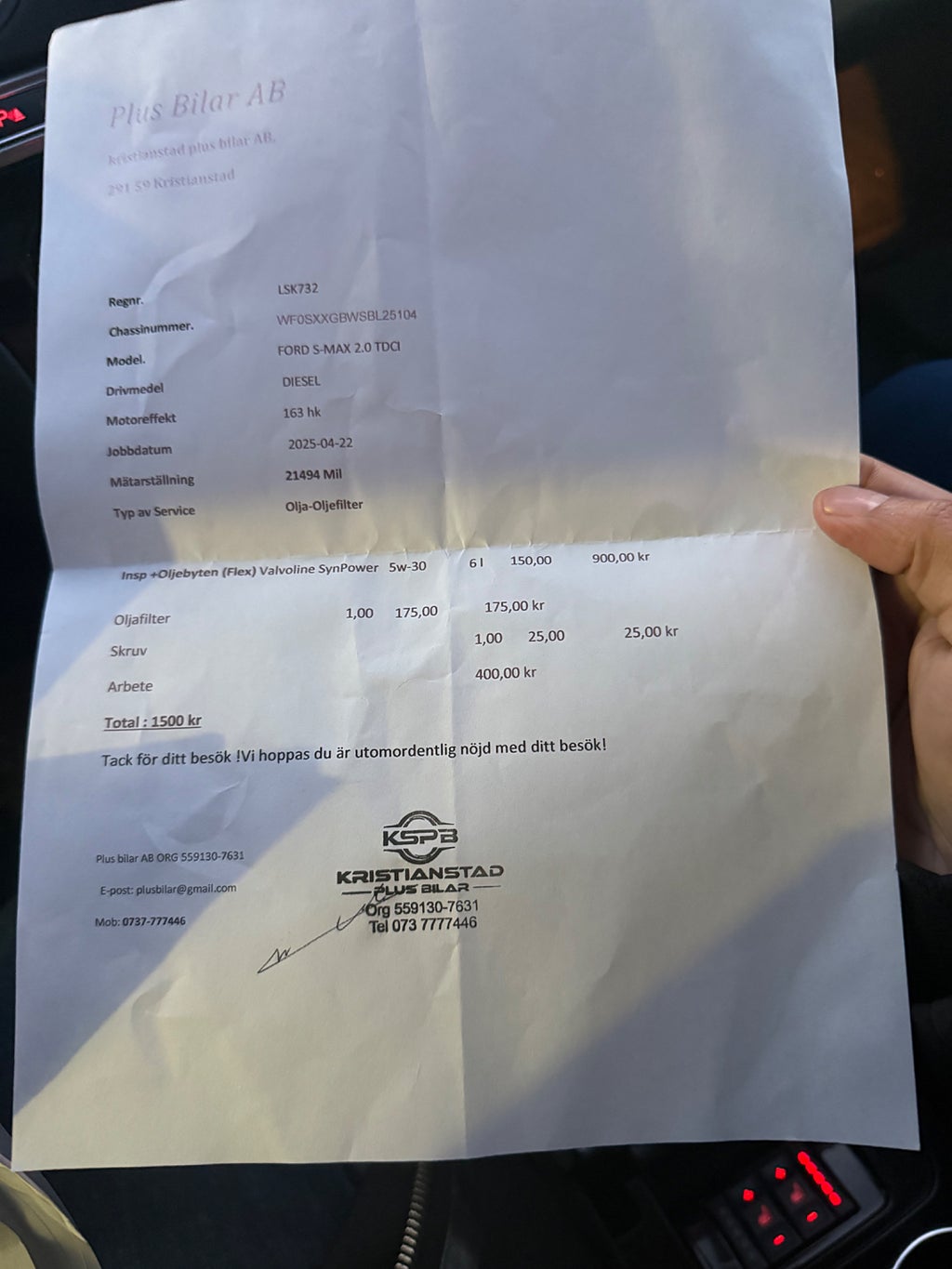 Sidospeglar (elinfällbara), Elmanövrerat förarsäte (med minne), Elmanövrerat passagerarsäte (med minne), Nyckelfritt system (Keyless), Premium Sound System högtalare, Nybesiktigad t.o.m 2027-04-30, Servad vid 21494 mil (2025-04-22), Mycket välvårdad såväl invändigt som utvändigt.