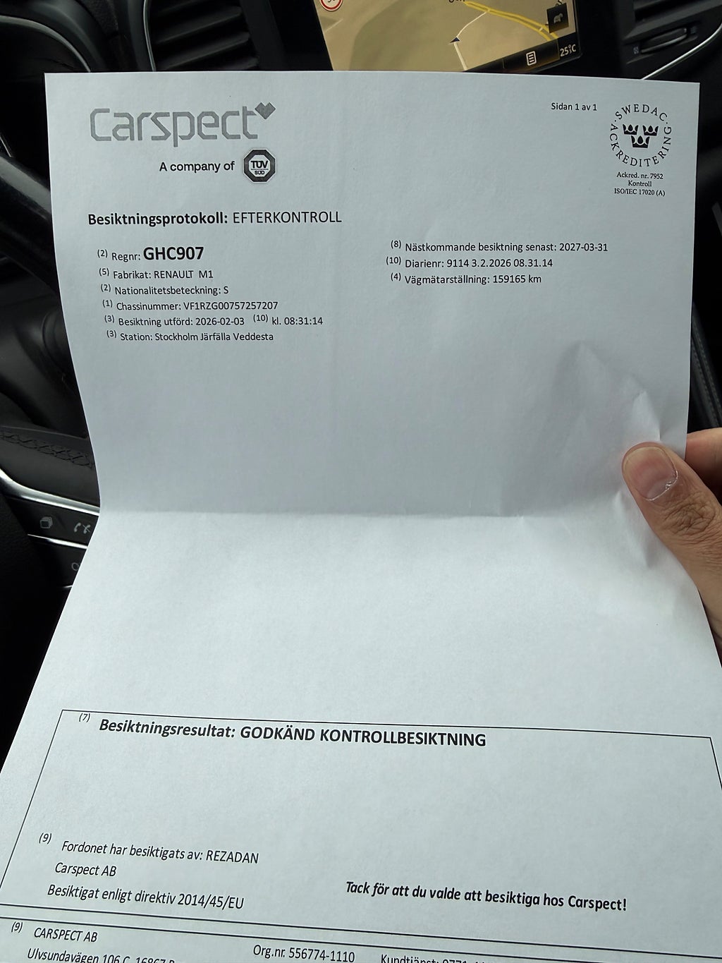 Avbländande innerbackspegel, Avstängningsbar airbag passagerare, Airbag passagerare fram (avstängningsbar), Nyckelfritt system (Keyless), Nybesiktigad t.o.m 2027-03-31, Nyservad vid 15916 mil (2026-01-19), Mycket välvårdad såväl invändigt som utvändigt.